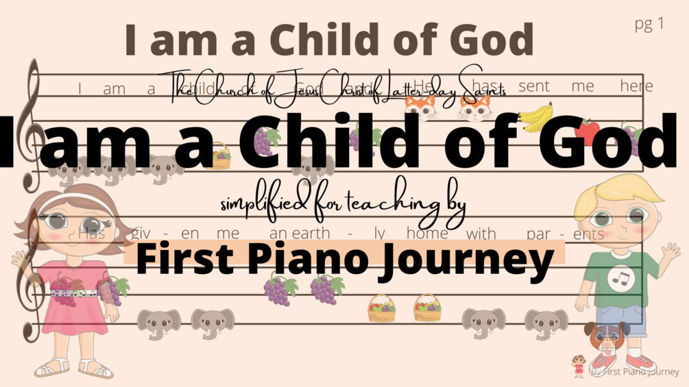 "I am a Child of God" with the special First Piano Journey musical notation.